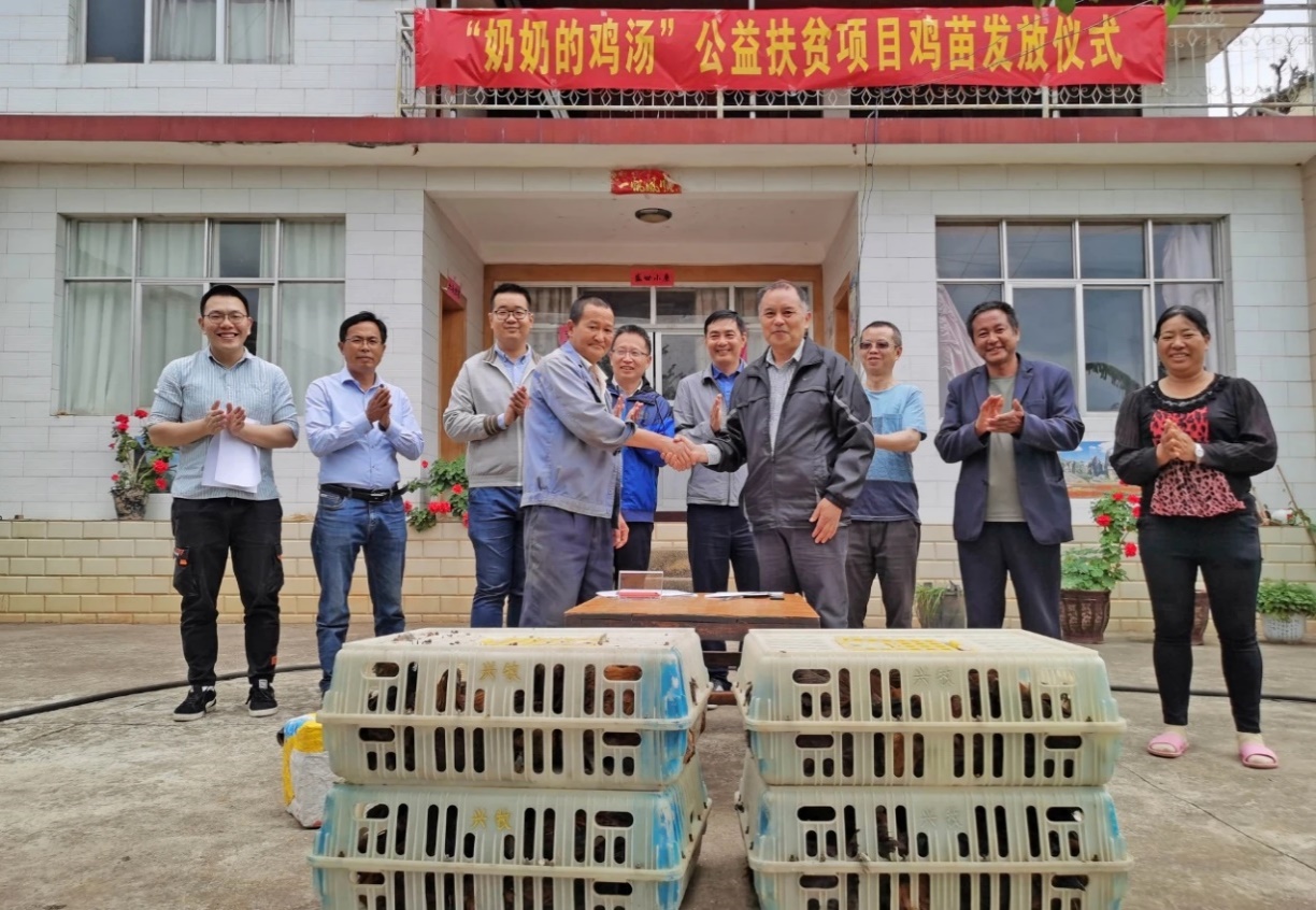 本次发放鸡苗是“奶奶的鸡汤”公益扶贫项目第一批,共发放60日龄的无量山乌骨鸡苗1020只,价值近3万元,具有较强的抗病能力和适应能力,成活率高。针对有养殖意愿但缺乏养殖技术、初始资金和销售渠道的贫困户,通过“鸡苗免费发放+养殖技术帮扶+成鸡统一回购”的模式,帮带贫困户增收,形成了循环式产业、增收产业。项目共帮扶养殖户21户,其中建档立卡户16户。前期项目成员还多次到贫困户家中的实地考察和沟通,激发贫困对象脱贫致富的内生动力,实现扶贫与扶志相结合,推动他们从“要我脱贫”向“我要脱贫”的思想转变和行动转变,积极引导贫困户用自己的辛勤劳动实现脱贫致富的梦想。