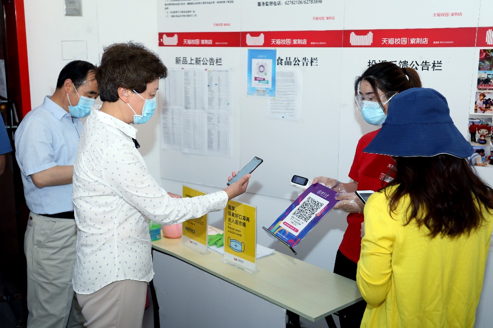 陈旭、吉俊民先后前往紫荆园食堂、学生服务中心(C楼),检查学生返校报到、防疫措施落实及食堂供餐、学生超市供货情况。陈旭详细询问就餐管理、日常消杀、超市货源以及防疫物资供应情况,对饮食中心和学生社区中心的疫情防控常态化工作给予充分肯定。陈旭还建议相关单位在这个特殊的毕业季,把服务学生的工作做细做实,充分体现对学生的关心和关爱,让毕业生们感受到返校的温暖。