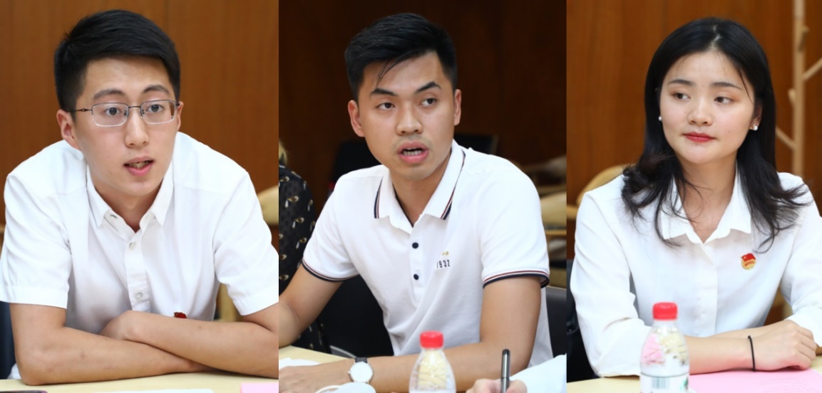 校学生会主席钱菱潇介绍了清华学生会在党委领导、团委指导下已颇见成效的改革情况,表示未来学生会将进一步明确定位,深化改革,创新工作方式方法,与时代同奋进。博士生讲师团团长林晨分享了博士生讲师团22年来以朋辈宣讲和浸润教育为核心,探索思想政治教育新模式,引领广大团员青年听党话、跟党走的成果与经验。艺术团马兰花开党支部书记田邵君讲述了党支部以话剧的形式诠释邓稼先光荣事迹,坚定自身理想信念、筑牢爱国奉献精神底色的特色做法与经验。