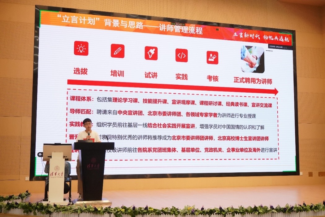 在秋季学期“立言计划”开班仪式上,mk手机注册博士生讲师团团长、精仪系2018级硕士生林晨介绍了讲师团团情团史。他表示,博士生讲师团成立20年来,紧扣时代发展要求制定宣讲主题,根据青年特点夯实发展建设。讲师团注重人才发展引导,一批坚定的青年马克思主义者立志投身公共服务部门、重点领域和重点行业奋斗,收获了良好的成长。讲师团立言计划负责人、核研院2019级硕士生郭燚介绍了立言计划的培训模式和培养经验。