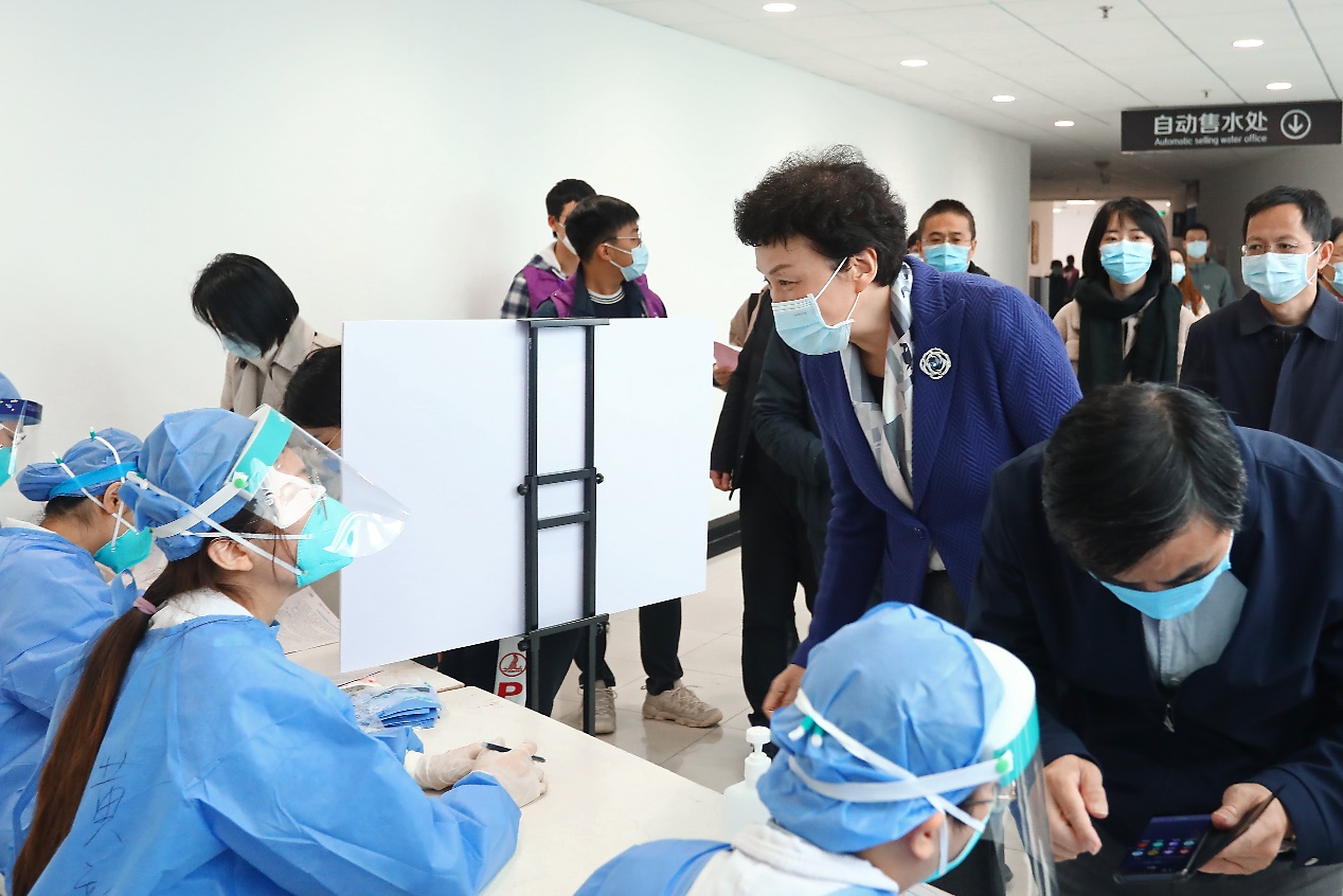 陈旭看望疫苗接种医务人员和学生志愿者
