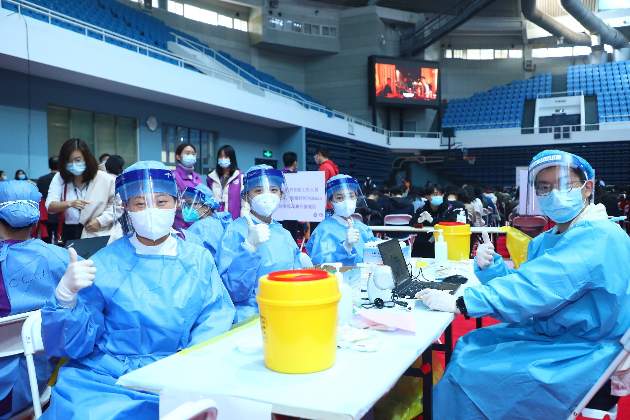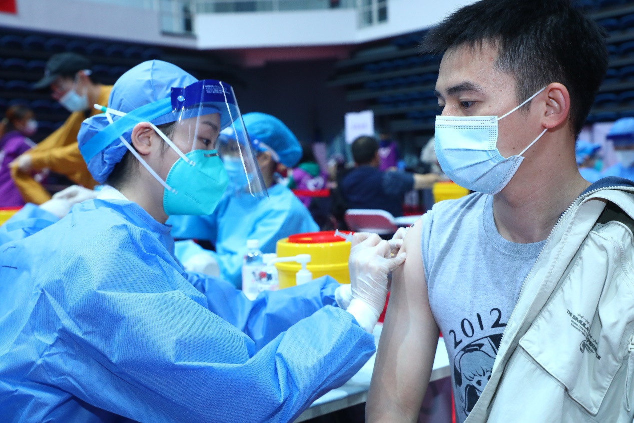 医务人员为师生接种疫苗