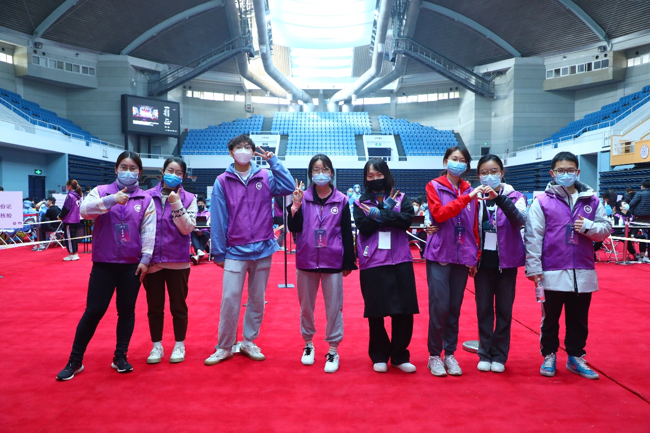综合体育馆外的志愿者同学