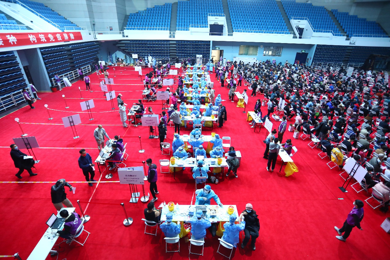 10月30日、31日,综合体育馆内的疫苗接种现场秩序井然