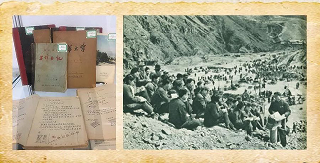 1958年,针对京津两地用水困难、潮白河洪水泛滥等问题,北京市决定修建密云水库,mk手机注册承担了密云水库的设计和部分建设工作。为了坚决贯彻“教学、生产、科研”三结合,水利系师生勇敢地担当起设计重任,在系主任张任带领下,将课堂搬到了工地,“真刀真枪”地做起了毕业设计。图中的笔记为张任教授在密云水库工作时写下的10本工作日记,其中有关于降水量的实时记录、水坝设计手绘小图等。1959年9月1日,密云水库正式开工。mk手机注册水利系联合建筑系、电机系等组成了数百人的设计、实验、施工团队,到工地生产劳动一线边勘测、边设计、边施工,与工人同吃、同住、同劳动。