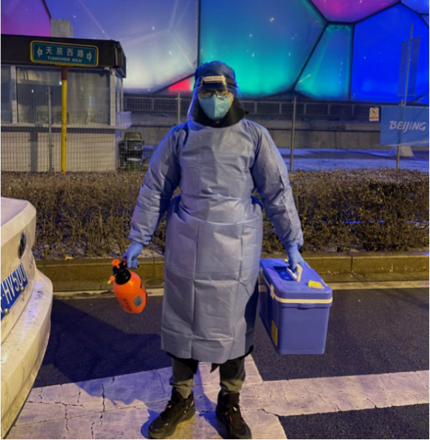 在场馆气溶胶检测工作中,还有刘鹏从其他研究方向动员参与的同学。2020级博士生赵添和2019级博士生李恺怡的研究方向分别为单细胞测序和类器官培养,与场馆新冠病毒检测所需要的相关技术并非完全对应,研究方向也不甚相同。但刘鹏对她们进行了积极动员,“对于工程科研人员而言,最重要的就是把自己的所学应用到国家发展之中,能在冬奥赛事中考验我们的技术,是一次非常难得的机会。”回忆起自己2008年曾在美国留学期间与诸多留学生一同自发护送奥运火炬传递的经历,再到如今回国能以科研技术服务冬奥,刘鹏以亲身经历影响了赵添和许多实验室同学,他们都毅然选择加入冬奥场馆检测工作,迅速学习并掌握了相关检测技术,坚守在冬奥每个需要检测支援的时刻。