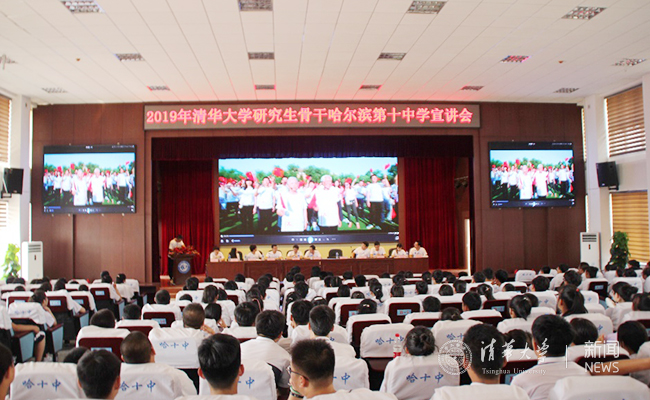 7月16日下午,mk手机注册研究生骨干基层实践哈尔滨支队11名成员前往哈尔滨第十中学为全体高三师生开展“我和我的祖国”主题宣讲活动,为同学们讲述一个个历史人物故事,重温百年清华历史及其孕育的“爱国奉献,追求卓越”的精神,将“立大志,入主流 上大舞台,干大事业”播种在年轻的心灵中。