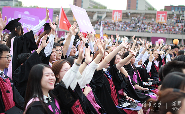 坐在看台观礼的毕业生亲友全程见证了毕业典礼的难忘时刻。能动系本科毕业生韩储银的父亲激动地说:“很高兴能够来到典礼现场与孩子分享喜悦。四年来储银变得越来越有自信和担当,这得益于清华精神的熏陶和老师们的培养。特别感谢清华完善的资助体系,让孩子能无忧无虑地完成学业。祝愿清华越来越好,为国家和社会培养更多的栋梁!” 电子系本科毕业生刘可淳的母亲感慨地说:“转眼间,女儿已在清华出色地完成了本科学业。繁重的学业之余,她还率领校女篮二队、电子系女篮奋力拼搏,我们由衷地为她感到自豪。很快她就要赴华盛顿大学攻读计算机专业博士学位了,祝福女儿在人生道路上再创佳绩!感谢清华四年来的悉心培养!”
