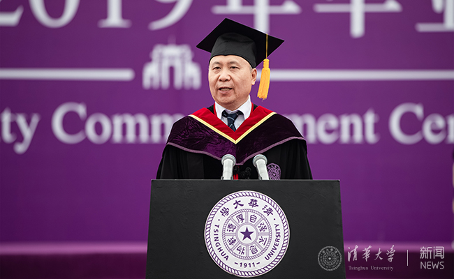 邱勇首先向毕业生及其亲友表示热烈祝贺,向悉心指导他们的老师表示衷心感谢。邱勇说:“你们是我担任校长之后迎来的第一批本科生。我很高兴能见证你们四年的成长,很欣喜看到你们顺利毕业。”邱勇回顾了毕业生与清华共同成长的四年——自强不息、厚德载物的校训涵养了你们的君子气质,行胜于言的校风塑造了你们的笃实品格。我们一同见证了奋进的清华不断呈现新气象,变革的清华持续展现新作为,开放的清华主动拓展新视野。