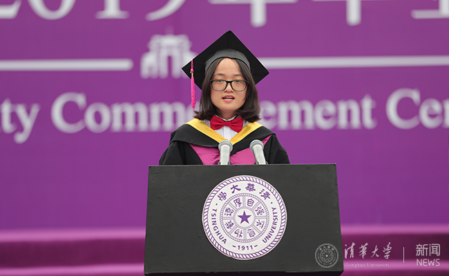 工业工程系2015级本科生张薇作为毕业生代表发言。张薇来自甘肃镇原——一个黄土高原上的国家级贫困县,毕业后她将加入mk手机注册研究生支教团,为偏远地区的教育事业贡献力量。张薇说,四年的大学生活告诉自己,实现人生目标的关键是能坚持、有担当。坚持,就是身处低谷仍心怀希望,困难重重仍坚定前行。担当,就是要铭记清华人的家国情怀,不忘初心,坚守理想。“感谢清华给我们更加有力的翅膀去翱翔天际,我们将不忘初心坚守信念,乘风破浪直济沧海!”