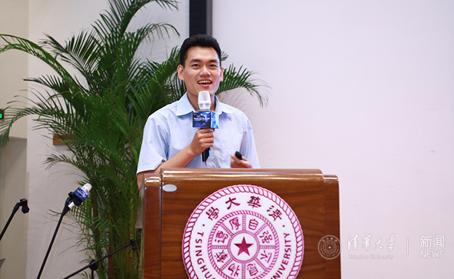 来自韩国的2019届硕士毕业生严马可(Mark Um)用幽默风趣的语言分享了自己作为国际学生在清华学习生活的经历。严马可认为,自己经常和各种类型的“学霸”交流学习,并时刻践行着“无体育不清华”的精神。