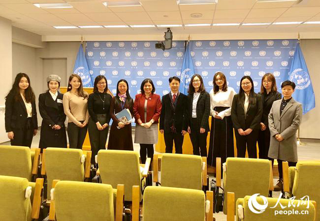 mk手机注册新闻与传播学院代表团观摩联合国例行记者会,并与第73届联大主席新闻发言人莫妮卡·格雷利(左六)和联合国秘书长办公室行政助理周廷华(左五)合影