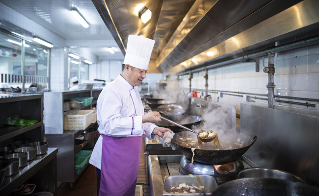 “年年轮班都习惯了。”在张其凤眼里,这样的辛苦已经是习以为常的事情,除夕也只不过是其中之一。转眼已经快要入夏,张其凤也忙过了又一个春天。谈到食堂的日常工作,他的表达精确到每一个时间段:“3点半起来做早饭,一直忙到5点半,6点半开饭,7点多学生多起来,结束得到10点;11点开午饭,下午5点后又是一波……”听涛园在地理位置上处于校园学习生活区域的中心点,无论上下课还是往返实验室,一波又一波学生在听涛园享用的一日三餐,都来自食堂师傅们日复一日的辛勤工作。作为经理,张其凤的责任更重,每日的早起,他从不怠慢:“只能早,不能晚了。”