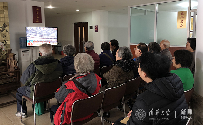 校领导和专家学者在工字厅东厅集中收看人大开幕 李派 摄