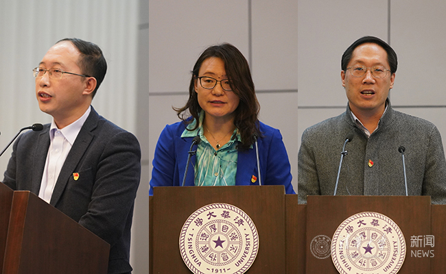 陶晓明、武康平、张瑜三位“双带头人”教师党支部书记工作室负责人作交流发言 尹浜兆 摄