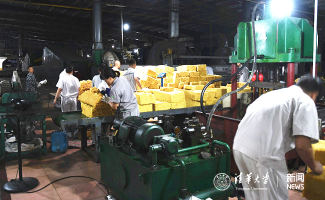 8月9日晚十点,支队来到原属八一总场的海胶金星加工厂参观橡胶加工。2004年,海南农垦实施改制重组,八一总场作为“龙头”农场挂牌成立海南天然橡胶产业集团股份有限公司八一分公司;2008 年,海南农垦管理体制改革,实行“政企分开、社企分离”,八一总场与海胶集团八一分公司分离并存,主业橡胶被剥离给海胶集团八一分公司。脱离总场许久的橡胶加工厂和传统的制造工厂类似,采用半自动化生产模式。新鲜的橡胶水经过沉淀,凝固,脱水,压缩,烘烤等多个工序加工为成品橡胶,经过流水线尾端的封装处理运送出厂。