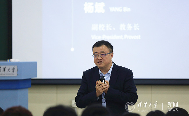 杨斌对国际本科新生的到来表示欢迎,他表示,国际本科生新生拓展营出发点是希望中外新生能够同时报到、加强融入交流,形成珍贵的情谊和集体。拓展营内容丰富,得到了新生的热烈欢迎,也取得了显著成效。在题为“清华校歌中的大学理想”的讲座中,杨斌从解读校歌的历史背景开始,进一步诠释了校歌中“器识为先,文艺其从”等歌词的意义,表达了对同学们成为具有价值、个性的未来定义者、领导者的期望。他希望新生们建立主人翁意识,“只有你当自己是园子的主人,这个园子才会当你是她的主人”,表达了对同学们融入清华的期待。