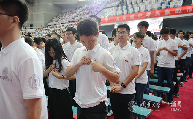 今年的开学典礼首次安排了全体研究生新同学共同佩戴校徽的环节。校徽是“清华人”身份的象征,凝聚着 “自强不息,厚德载物”“行胜于言”的清华精神。