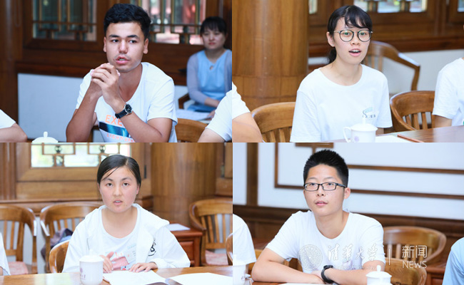 参加座谈会的新生代表畅所欲言,分别为(从上至下、从左到右)达尼亚尔·排祖拉木、孙遇晴、马依晴、李承谦。常志东 摄