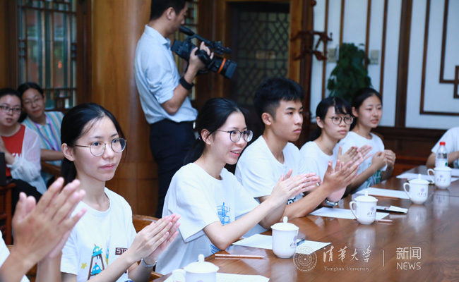 座谈会上,同学们畅所欲言,分享个人成长经历,介绍自己的兴趣爱好,展望对未来大学生活的规划和期待。同学们纷纷表示,暑期通过阅读校长赠送给全体本科新生的《从一到无穷大》这本书,了解了科学史上一个个重大发现的故事,感受到了科学的魅力,对科学研究、对世界有了更加全面的认识,并希望在未来的学习生活中不断提升自己的科学素养,不断超越自我,在清华园的平台中实现无穷大的可能。