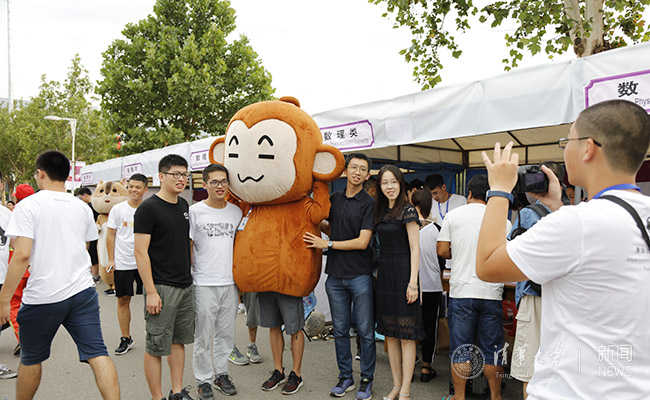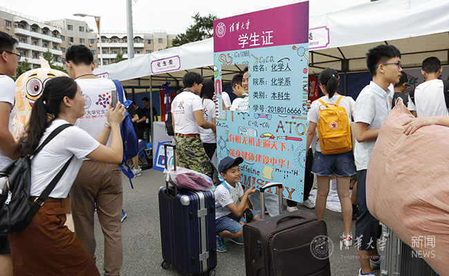 今天的清华园被迎新的道旗、展板、横幅等装点得五彩斑斓,一系列引导和报到工作都进行得井井有条。迎新点的学长学姐们使出“十八般武艺”,只为让新生们感到家的温暖。他们有的扮演成可爱的吉祥物,引来新生争相合影;有的展示出学生自制的智能赛车,并向感兴趣的新生介绍课程项目;有的张贴出微信二维码,扫一扫就能获取院系的贴心服务;有的还准备了甜点、饮料和赠书……