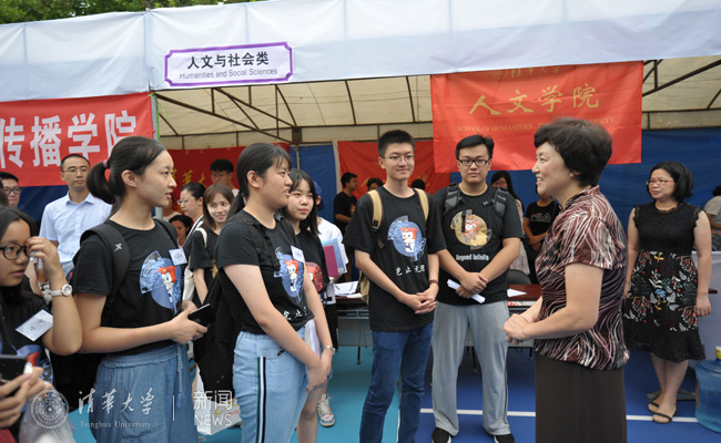 陈旭与新生亲切交谈 殷昊 摄