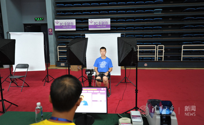 综合体育馆内新生拍照制作学生卡 殷昊 摄