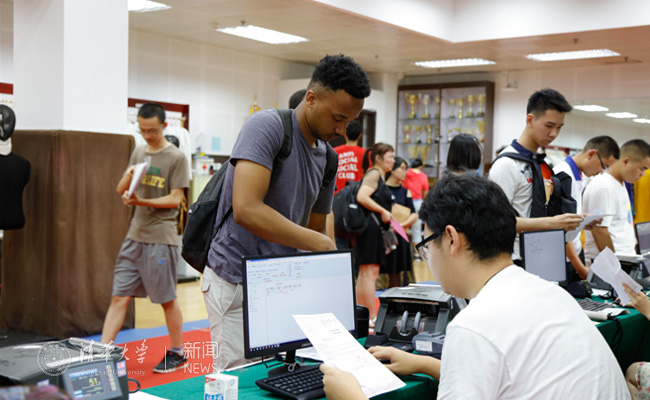 排队办理手续的国际学生 李派