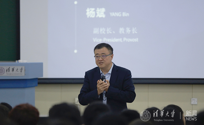 8月27日,清华副校长、教务长杨斌出席拓展营开营仪式并为2018级国际本科新生讲授入学教育第一课《清华校歌中的大学理想》。讲座中,杨斌为国际新生解读了校歌中蕴含的大学理想,如“器识为先,文艺其从”,是希望同学们未来能够成为具有价值、个性的领导者,肩负起清华人的社会责任和使命,他建议大家培养自己的主人翁意识,加强融入、形成集体,深入理解清华精神,真正成为清华园的主人。