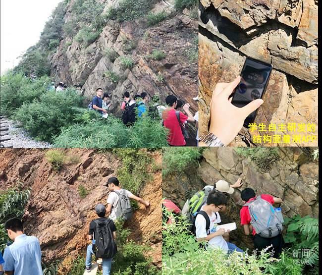 为了提高学生主动探索、主动思考和主动学习的能力,徐文杰在2017年暑期“地质实习”课程中首次推出混合式实践探索,真正实现学生野外完全自主认识、自主学习。4个小组20余人人参与,整个实习过程中仅配备一位助教,没有任何带队老师,学生完全进行自主式实习:出野外前,通过提前精确地对实习线路、实习点等内容及知识点进行自主预习;在野外实习中,通过同样方式实现实习点导航、实习认识内容及知识点学习的上传。相较于跟着教师“参观学习”的传统地质实习团队,这些学生的收获明显要深刻广阔得多。