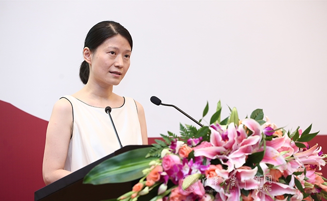 建筑学院母卓尔代表2014级同学向新雅书院的老师们致以衷心感谢,也期待新雅同学们一道“为成为一个更好、更完整的人而不断努力前行”。四年前,来自建筑学院、生命科学院、法学院、航天航空学院“钱学森力学班”的部分大一新生,共同进入初创的新雅书院,成为新雅第一届学生。母卓尔同学便是其中的一员。她在发言中回顾了自己在新雅学习与生活的经历,教会了同学们如何做一个‘通识’的清华人。她说,在新雅书院的学习为我们提供了一个起点,而这种探索将贯穿一生。