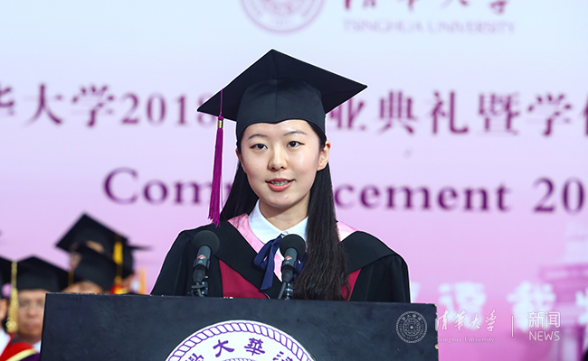 法学院2014级本科生傅书宁作为毕业生代表发言。傅书宁说,清华宽广的平台给予同学们广泛学习、大胆尝试的条件,更让他们逐渐了解“心之所向”,并不断提升自己。傅书宁选择在毕业后从事外交事业,她感谢清华四年培育了自己的“世界眼”和“中国心”,愿清华精神一路相随,愿梦想常青、担当常在,无愧于这个时代。