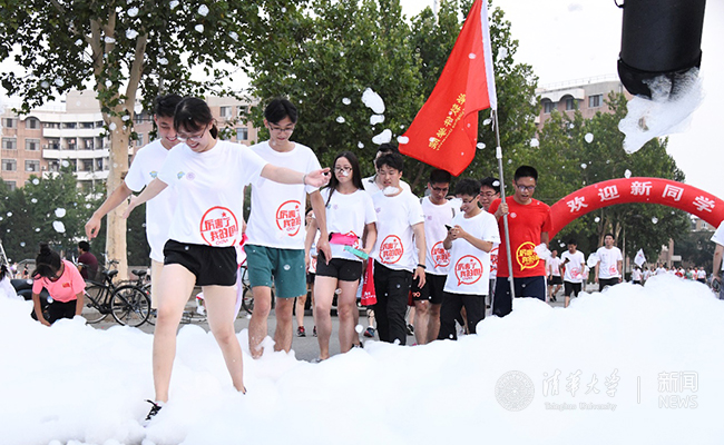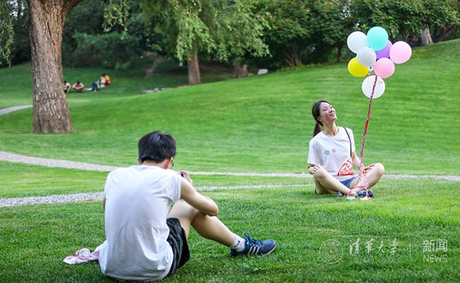 长跑过程中,在各院系队伍先后经过的二校门、北院旧址、紫荆服务楼等标志性建筑,沿途设置有展板、气球、气泡等活动物品,毕业生们经过时纷纷停步自拍或合影留念。