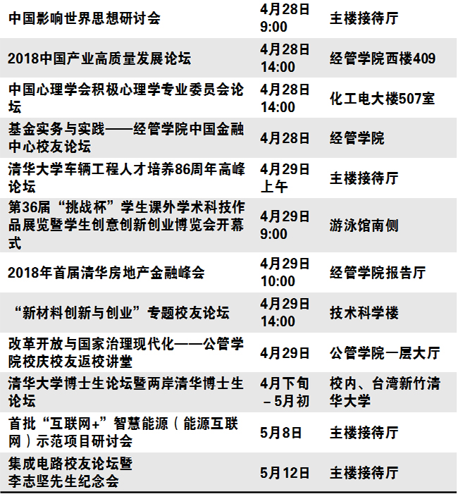 秩年、学术、体育、展览、校园开放、艺术、院系校友活动