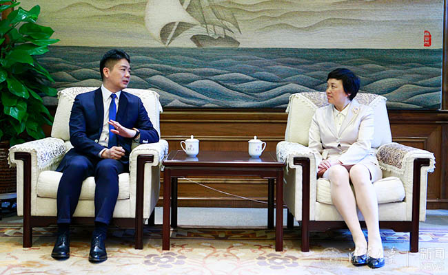 陈旭与刘强东会谈 记者 张 帆 摄