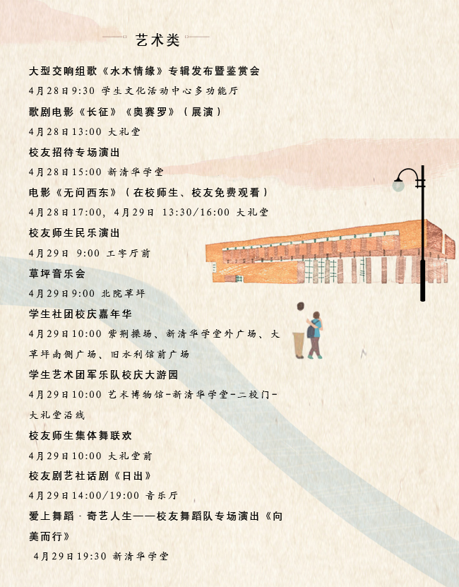 在这张手绘长图里,你不仅能看到清华熟悉的建筑和风景,说不定也能从中找到自己的身影、同学的身影、爱人的身影、家人的身影……我们脚步匆匆,我们意绪绵绵。汇入大游园,走进嘉年华,异彩纷呈的活动,正等待你我共同开启。