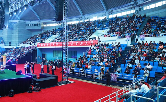 白发苍苍的老校长张孝文激动地回顾了自己当年做班主任时与同学们同吃同住、简朴节约的生活,以及与同学们结下的深厚感情。张孝文说,1974级同学们毕业以来的40年也是我国改革开放的40年,大家都是改革开放的亲身经历者、参与者和贡献者。作为大家的老师,特别为大家对国家社会的贡献感到自豪和欣慰。张孝文讲述了自己与病魔斗争多年,如今已经为祖国健康工作了63年的经历,希望借此激励1974级的校友们保持乐观心态,继续努力奋斗。