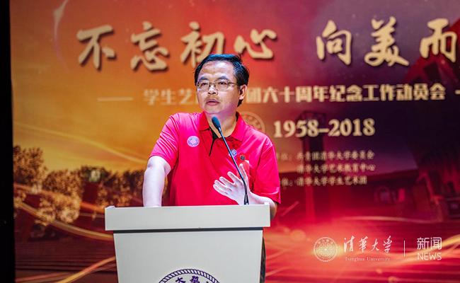 过勇在讲话中指出,艺术团有着60年光辉历史,在推动全校艺术工作的开展、推动全校育人工作的战略进步方面发挥了非常重要的作用,成为清华因材施教非常重要的机制。过勇希望以艺术团成立60年为契机,从全校艺术工作全局、从学校育人全局、从文化自信的高度全面总结学生艺术团60年发展历程,为清华未来艺术教育工作引领方向。
