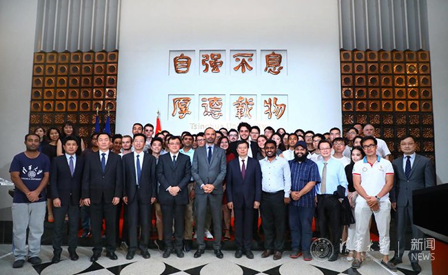 法国高等教育、研究与创新部部长弗雷德里克·维达尔(Frederique Vidal)女士,法国驻华大使黎想(Jean-Maurice Ripert),法国总理外交顾问卢力捷(Emmanuel Lenain)等陪同爱德华·菲利普来访并出席演讲会。包括法国留学生在内的mk手机注册师生代表与嘉宾350余人在现场听取演讲。