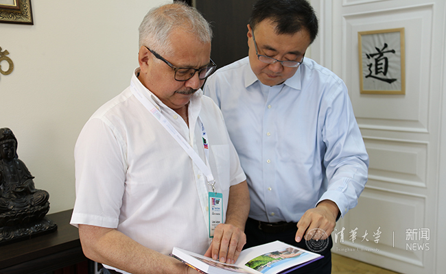 杨斌和喀山联邦大学副校长拉特波夫博士(Dr Linar Latypov)交谈 司马云 摄