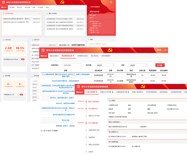 新系统开发坚持从实际出发,着力加强信息化系统的实用性和适用性。为满足各级党组织和各部门的党建工作实际需求,新系统丰富了权限类型,学校相关部处、各级党委、党总支、院系学生组、研工组、以及党支部和党员,都可以随时掌握权限所辖党组织党员的各类数据。考虑到个别特殊情况的党员参加组织生活、交纳党费的困难,新系统开发了党员长期生病生活不能自理、出国访学交流半年以上等特殊情况的维护功能,审批通过的特殊情况党员可不纳入组织生活出勤率等考核指标范围。为方便党支部开展组织生活纪实,新系统实现了党小组活动合并为党支部活动、活动考勤和党员补学线上记录、组织生活详情导出打印等功能,减少党支部线上线下维护的工作量。为帮助各级党组织把握党员发展进度、提高党员发展质量,新系统设计了党员发展时间轴、发展计划完成情况饼图、组织部材料退改记录等模块,配合党员发展各环节,实现全过程纪实管理。