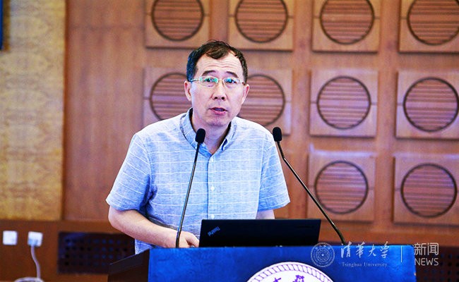 张友金介绍了清华数学基础课课程在不同院系的开设情况并分析了课程教学现状、存在问题以及主要改革构想。张友金表示,当前数学基础课的改革主要集中在对教材的新编修订、减少课容量等方面,未来还将会配合学校开设全英文课程、调整课程学时、加强教师培训和教学研讨。张友金强调,建设好数学基础课程,要靠优秀的教师和用功的学生,不仅要有一支具有扎实数学功底和广博知识面并活跃于数学前沿研究领域的教师队伍,还要对学生严格要求,敦促他们脚踏实地,认真学习。