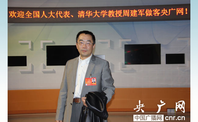 周建军在两会期间接受采访。来源:央广网