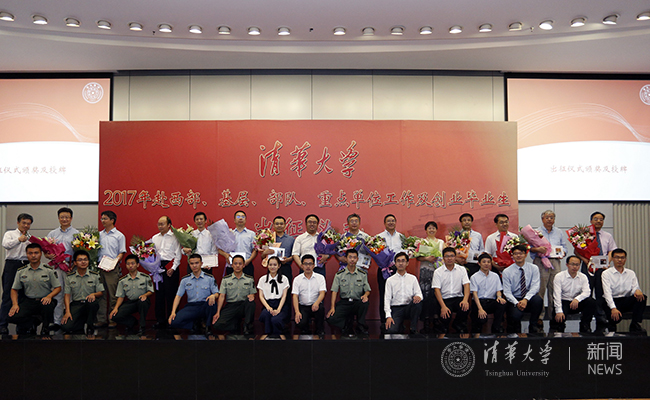 出征仪式上,工业工程系博士毕业生侯翔宇、水利系博士毕业生郭大卫、工程物理系博士毕业生李延武、法学院硕士毕业生顾蛟龙、美术学院硕士毕业生邱璧璇、汽车系博士毕业生黄俊、精仪系本科毕业生秦凤凯代表获奖同学分别发言,表达了毕业生奔赴西部、扎根基层、携笔从戎、投身主流、创新创业的坚定信念;表达了将秉承母校“爱国奉献、追求卓越”的精神到基层一线、学术前沿建功立业的决心。