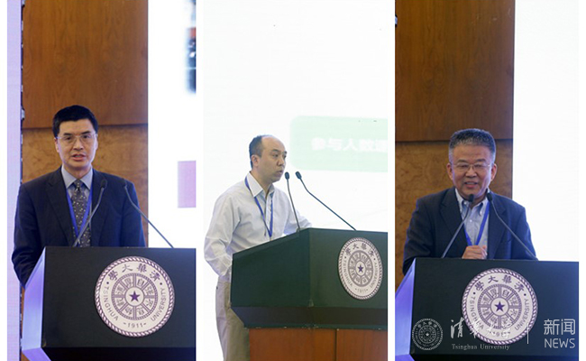 纪念大会分享报告(左起:姚强、王宏伟、杨士强)。