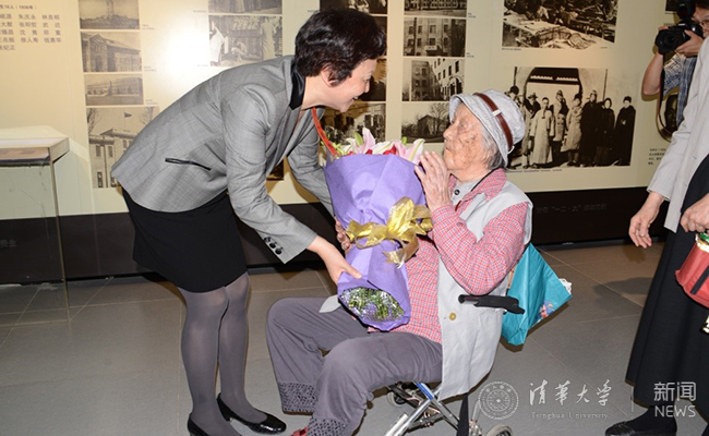 校党委书记陈旭专程赶到校史馆看望吴瀚学长,并向吴瀚学长送上献花。她说:“见到您很开心,您应该是参加校庆活动最年长的学长了。毕业80年特别有意义,祝学长健康,欢迎您明年再回清华。”
