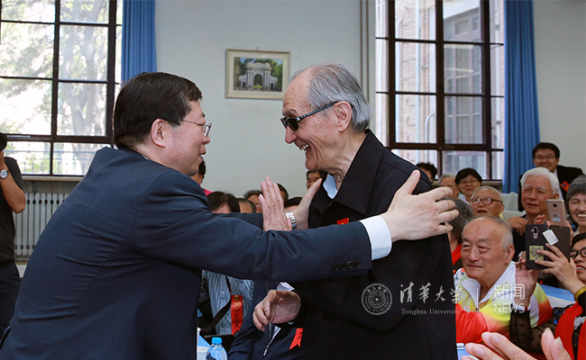 邱勇校长手扶滕藤先生从座位上站起。记者 苑洁 摄