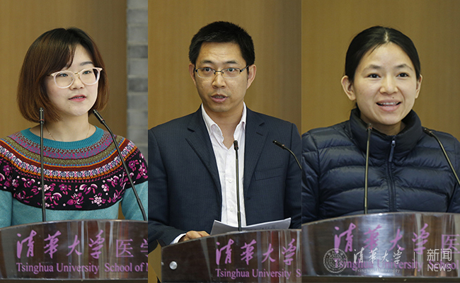 财务处党支部曹钰琳、规划处党支部孙俊楠、宣传部党支部刘蔚如分享“两学一做”的体验。记者 张 宇 摄