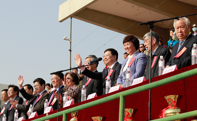 校党委副书记、体委主任史宗恺致开幕词。史宗恺说,一年一度的马约翰杯学生田径运动会设项最多、学生参与面最广、影响最大,搭建了展示运动技能、团队合作的重要舞台,深受学生们喜爱。马约翰先生提出的“体育迁移价值”,已凝聚形成了我校“育人至上、体魄与人格并重”的体育教育观,培养了一批又一批全面发展的优秀人才。相信“马约翰体育精神”将会给每一位清华学子留下永恒的烙印。