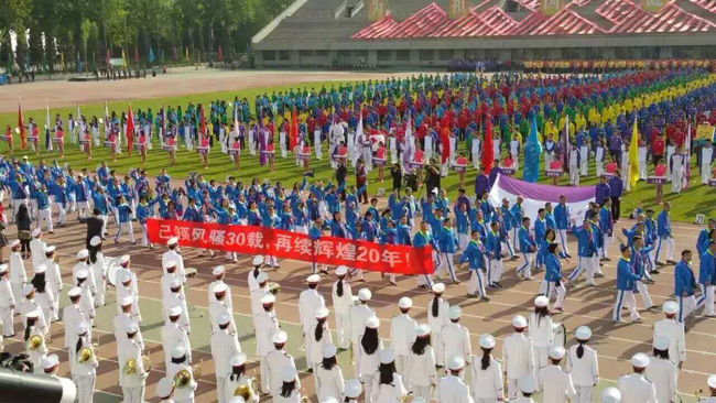 邱勇、陈旭与参加毕业五十年入场方阵的校友在一起。